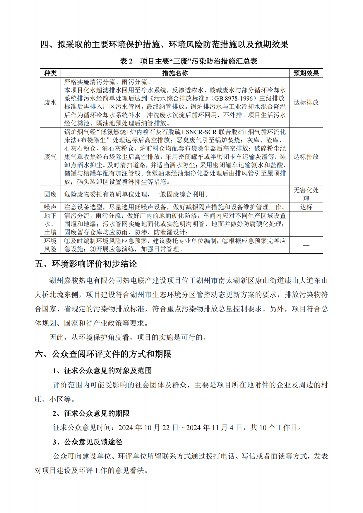 湖州嘉骏热电有限公司热电联产建设项目环境影响评价公示