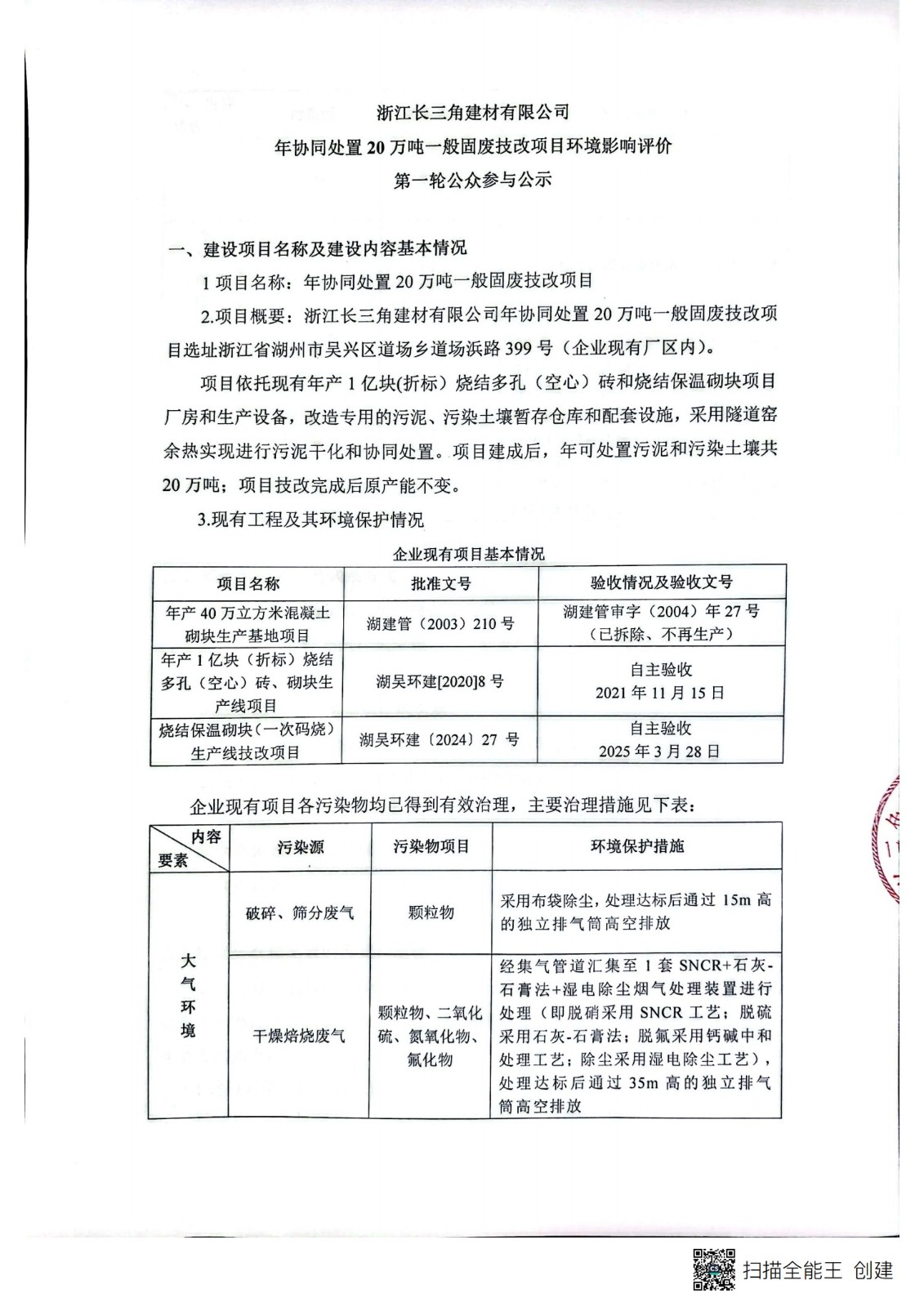 浙江长三角尊龙官网网站有限公司年协同处置20万吨普通固废技改项目环境影响评价第一轮参与公示
